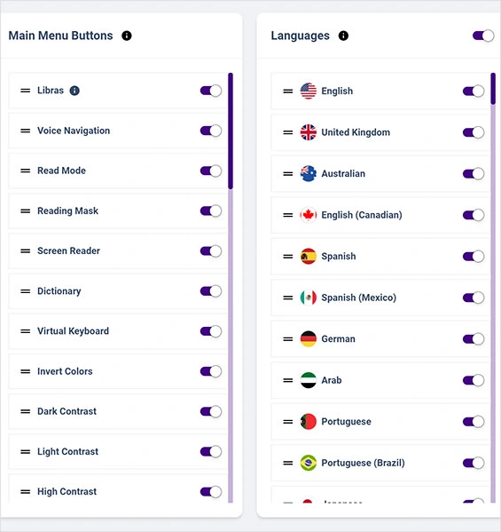 Multi-Language Select your preferred language from 140+ available languages or keep the default «auto detect» for your accessibility widget. | ||