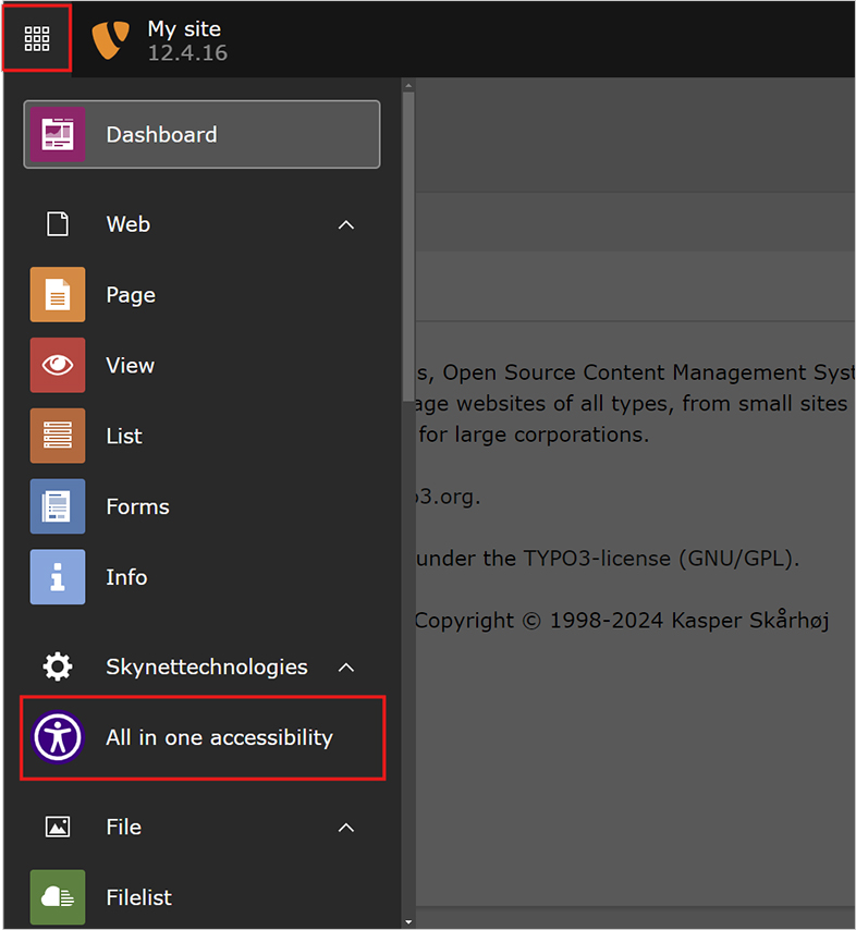 Explore the following steps to integrate All in One Accessibility widget as a part of Typo3 website: