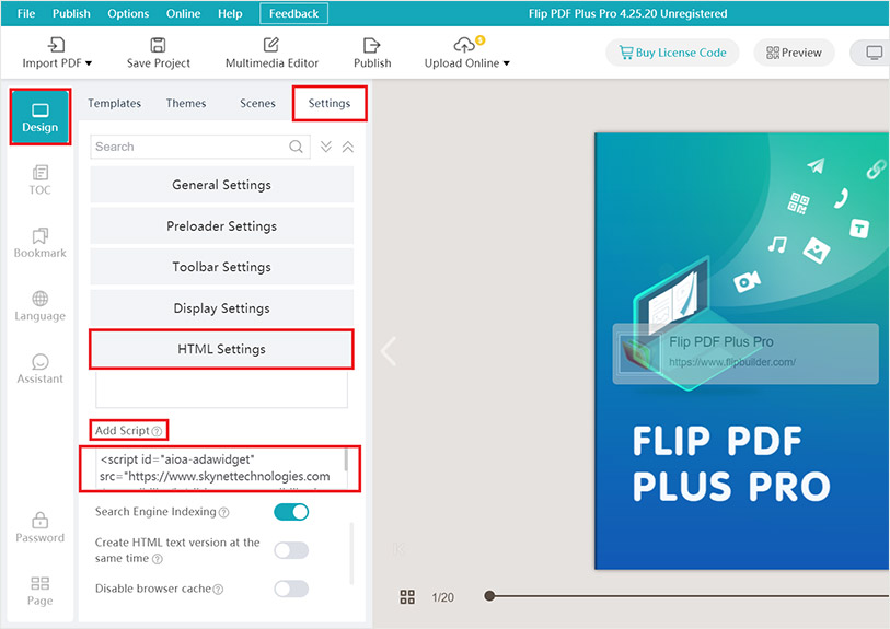Explore the following steps to integrate All in One Accessibility widget as a part of FlipBuilder website: