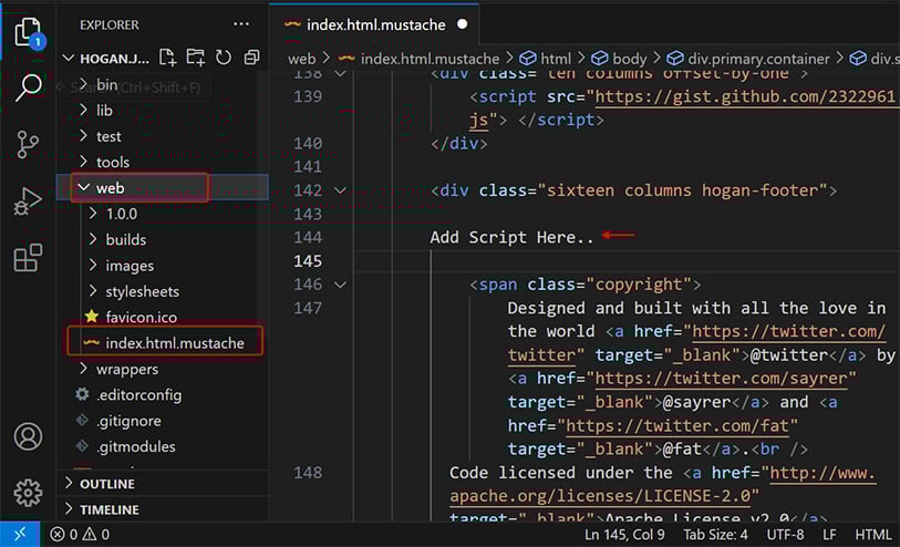 Then go to the index.html.mustache file (Root directory ➝ Project Name (as per you give) ➝ web ➝ index.html.mustache) and open it.