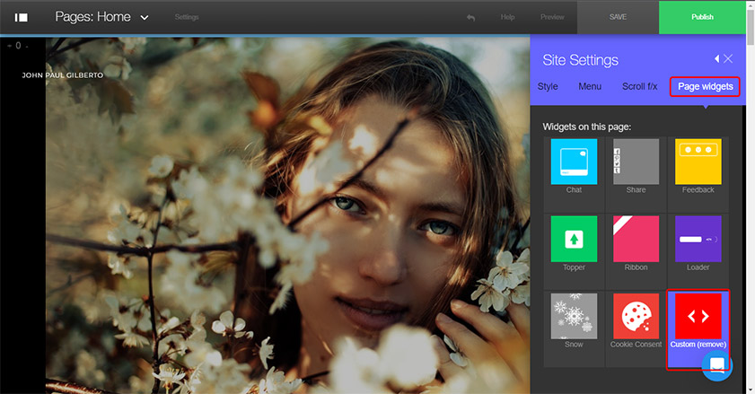 Then click on Page Widgets and Open Custom Option.