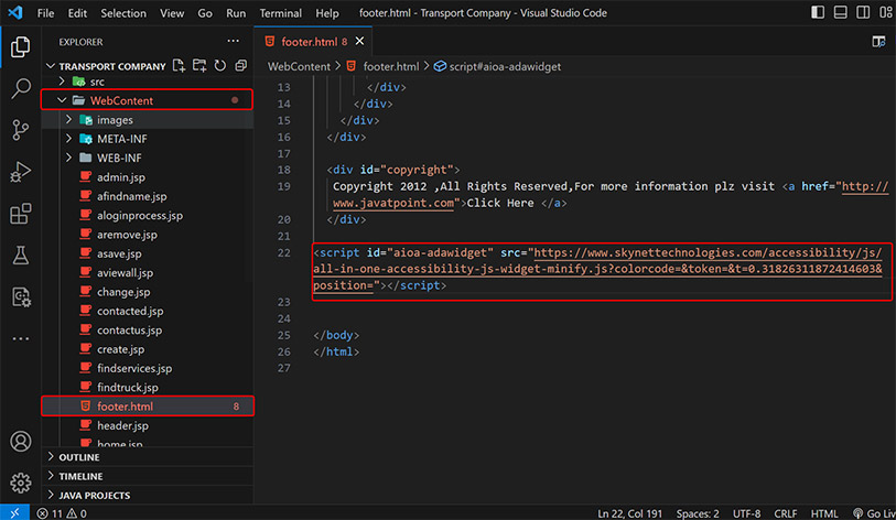 Explore the following steps to integrate All in One Accessibility widget as a part of Java website: