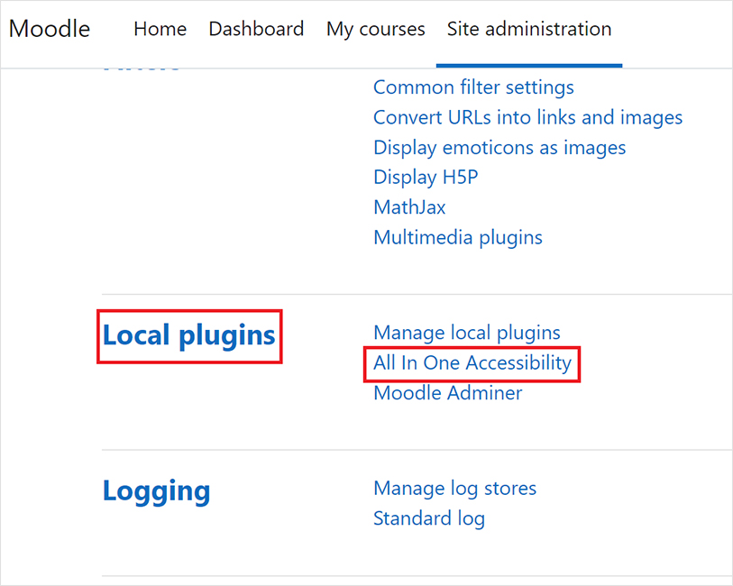 To Configuring All in One Accessibility, Go to the “Site administration ➝ Plugins ➝ All in One Accessibility”.