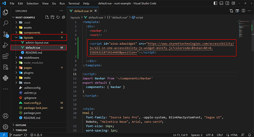 Explore the following steps to integrate All in One Accessibility widget as a part of Nuxt website: